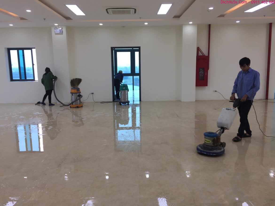 - Dọn dẹp rác và hút sạch bụi bẩn trên sàn nhà bằng máy hút bụi công nghiệp