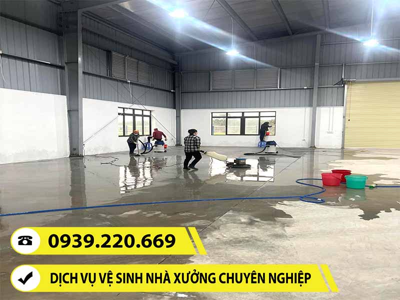 - Hút bụi, chà rửa sàn nhà xưởng, xử lý các vết bẩn lâu ngày.