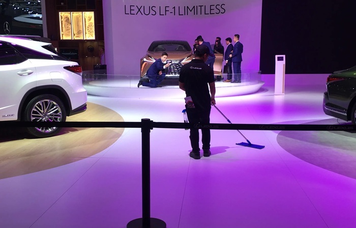 Trước khi thảm đỏ được trải xuống và sân khấu được dựng lên, mặt bằng thô thường chứa đầy bụi bẩn công trình hoặc rác thải từ các khâu thi công. Đội ngũ kỹ thuật viên sẽ tiến hành xử lý triệt để.